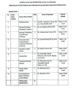 Untuk lebih lengkapnya silahkan download disini: Jadwal Kuliah Semester Gasal TA. 20252026 Magister Psikologi (1)